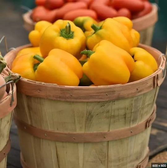 Tall, upright plants produce early-maturing, vibrant yellow bell peppers with a medium-to-large, blocky shape. This variety maintains its yellow hue longer before transitioning to gold or orange. The three- to four-lobed fruits are ideal for stuffing, while their thick walls and naturally sweet flavor enhance salads with a crisp, refreshing texture.